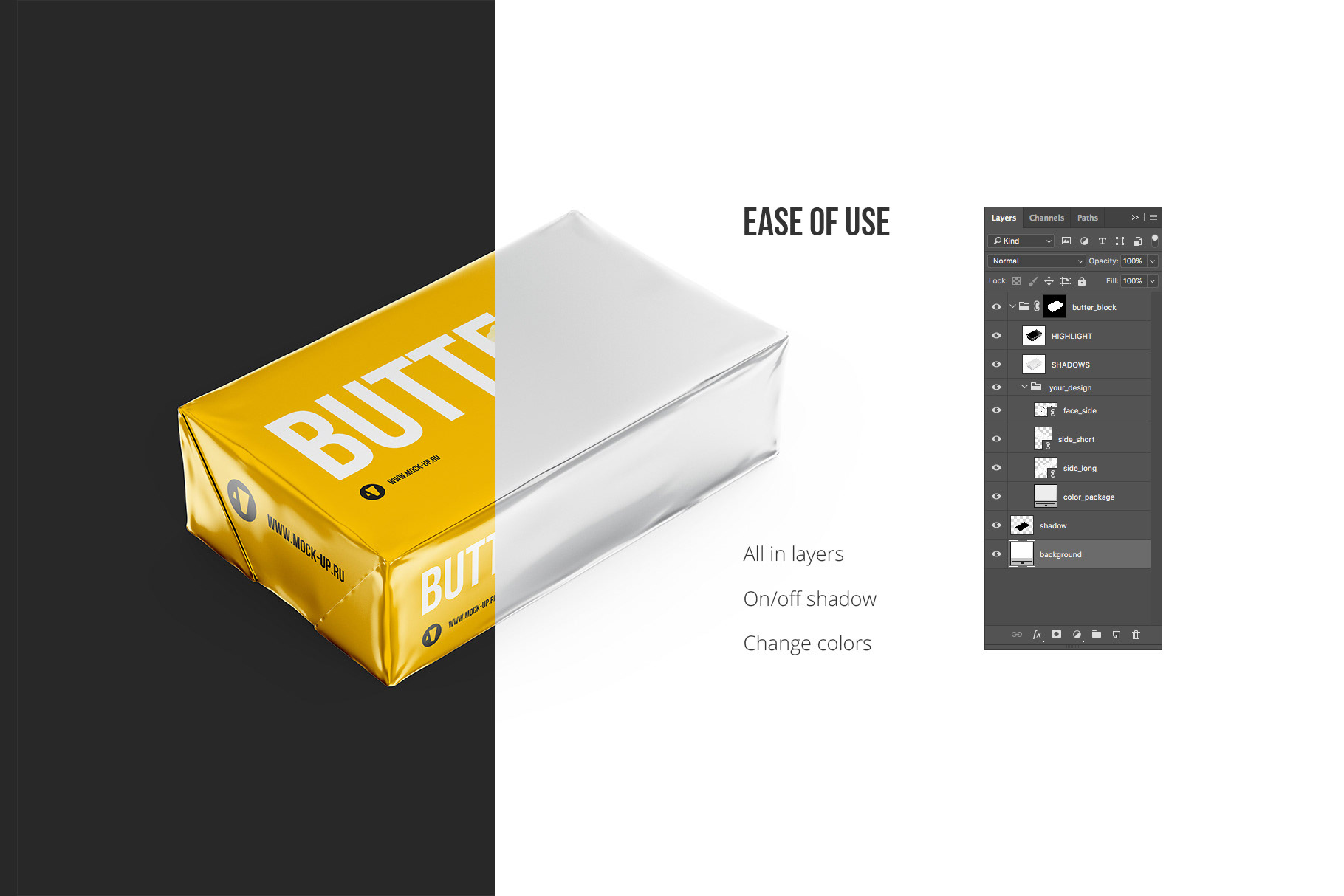 - Changeable colors, gradients (full range) and design (via smart objects)