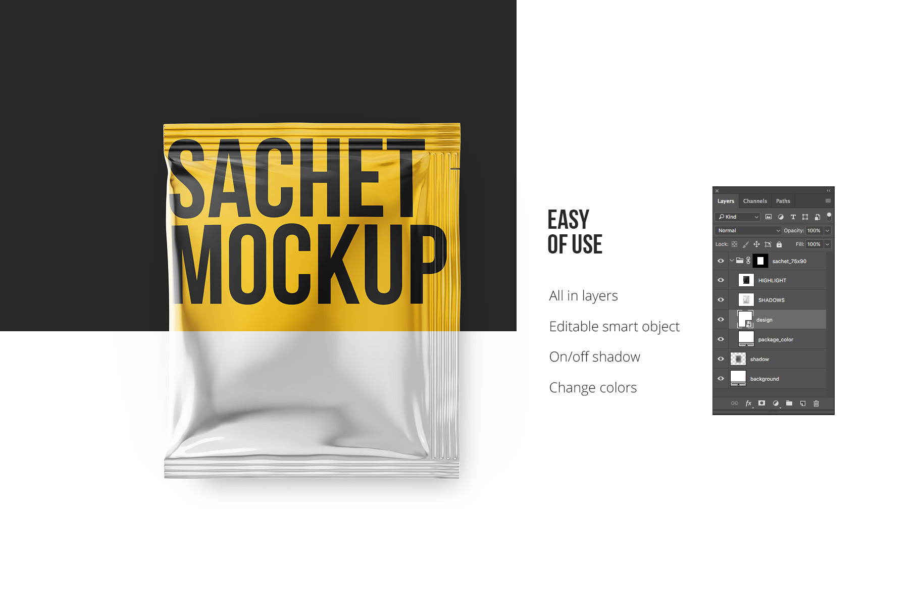 - All in layers (product, branding, highlights, shadows)