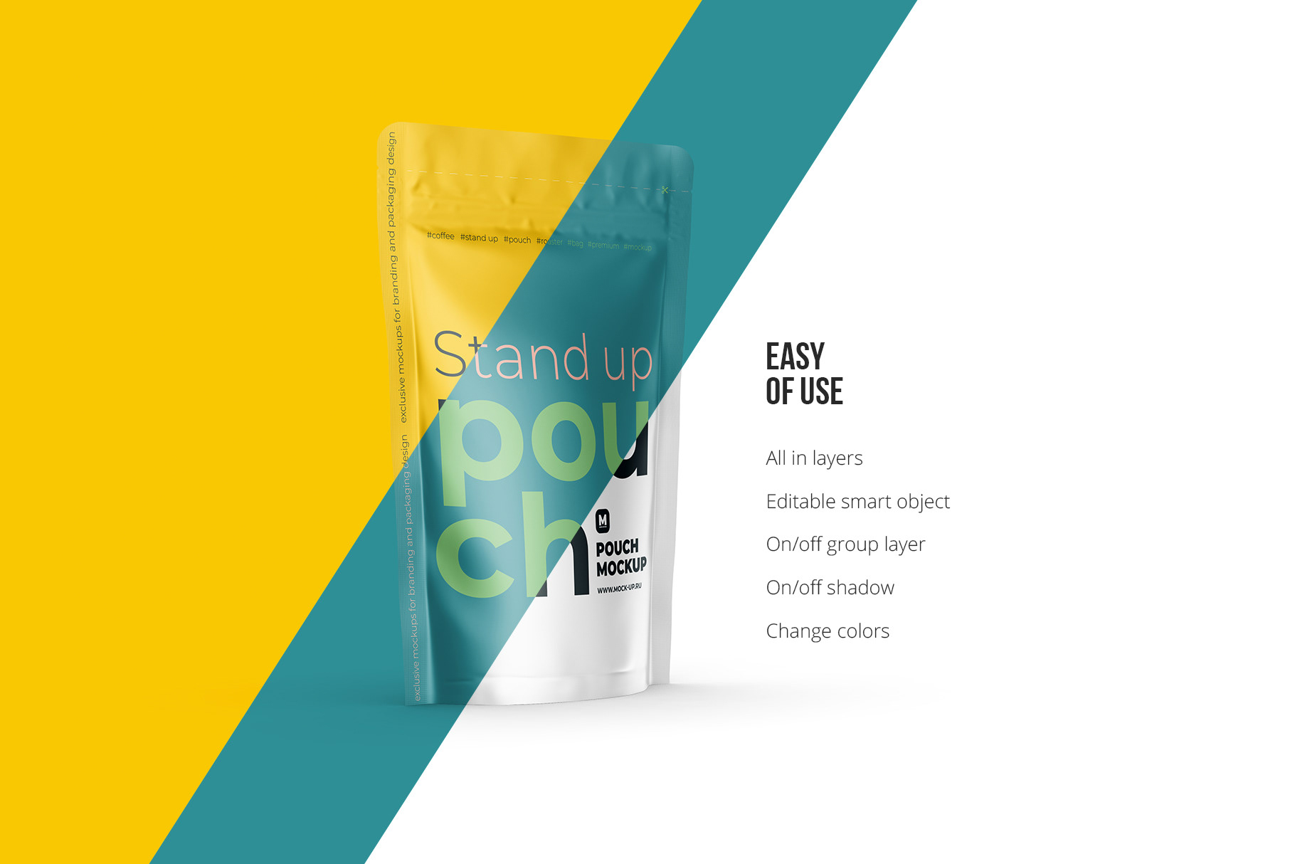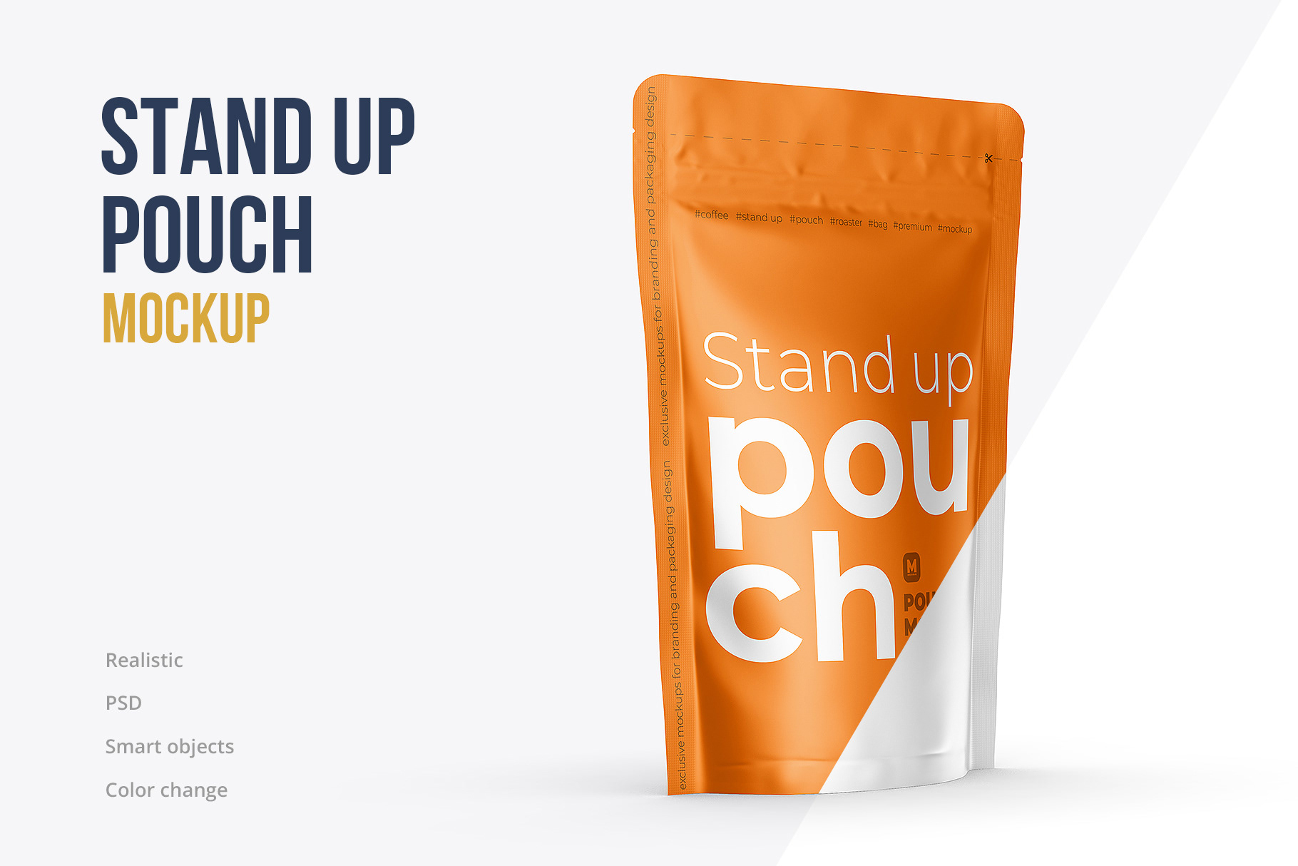 Хотите улучшить свое портфолио? Сделали дизайн упаковки для кофе или корма для животных, и хотите показать людям? Вам необходимо презентовать упаковку клиенту? Данный мокап stand up pouch вам идеально подойдет.