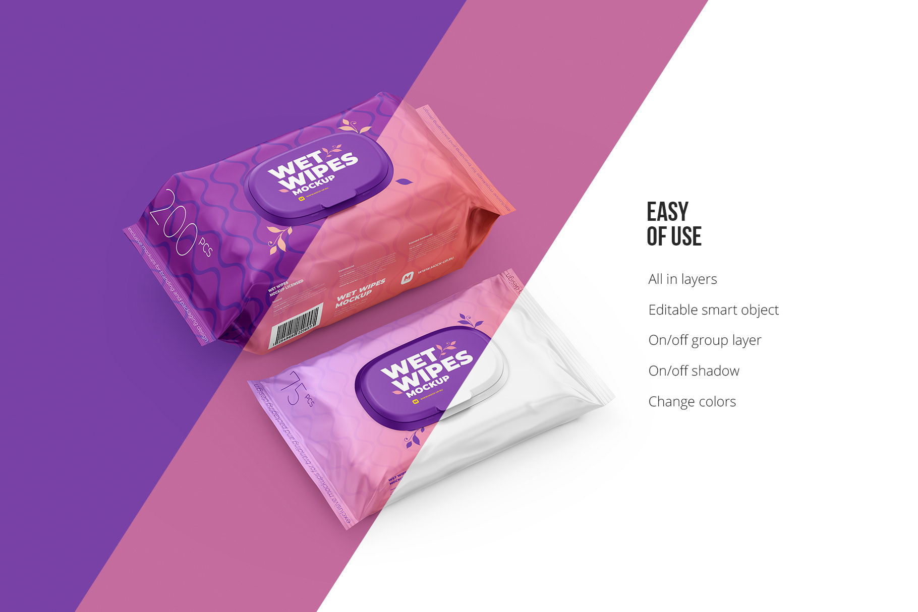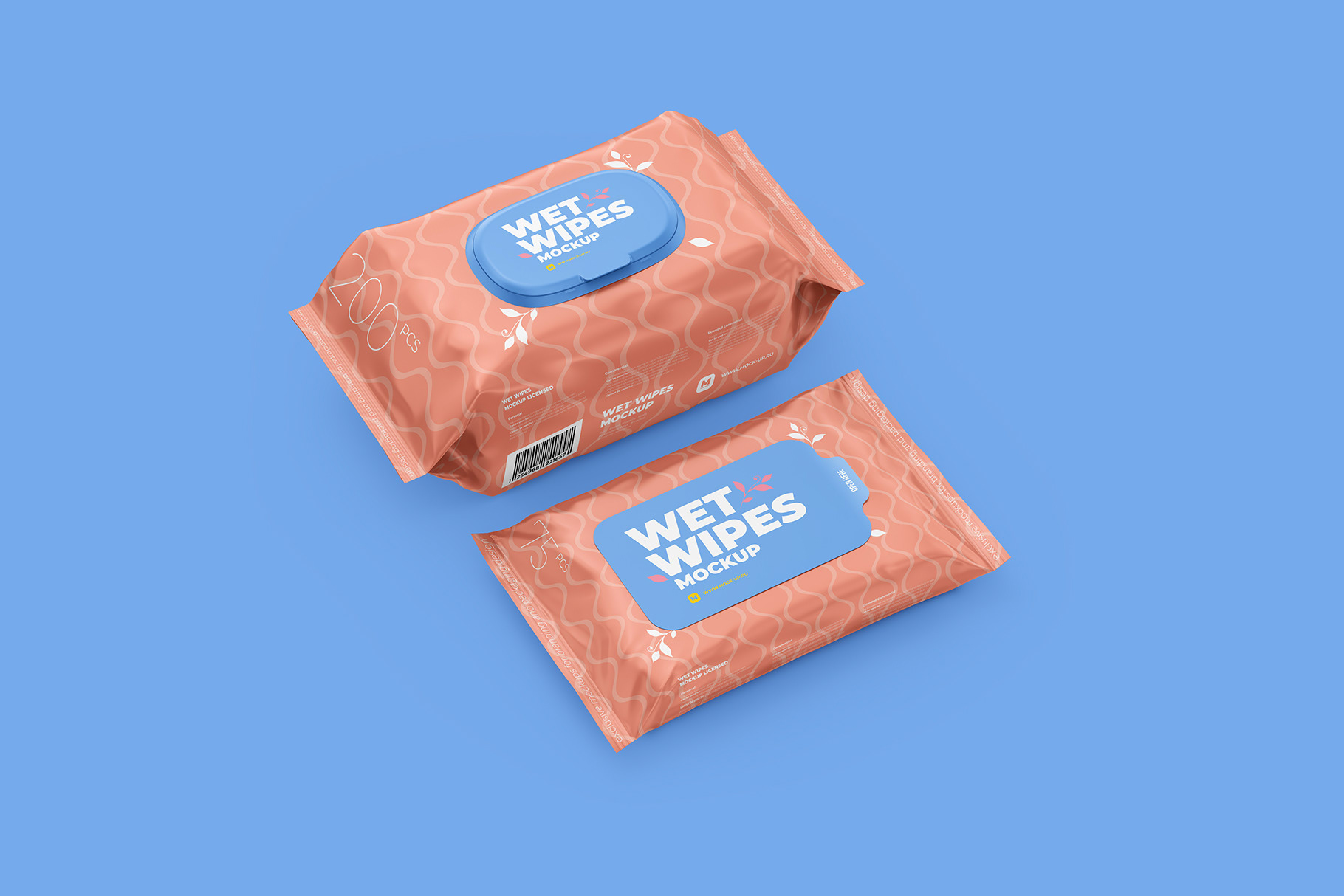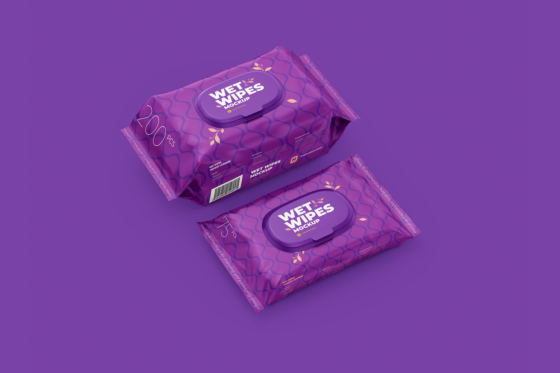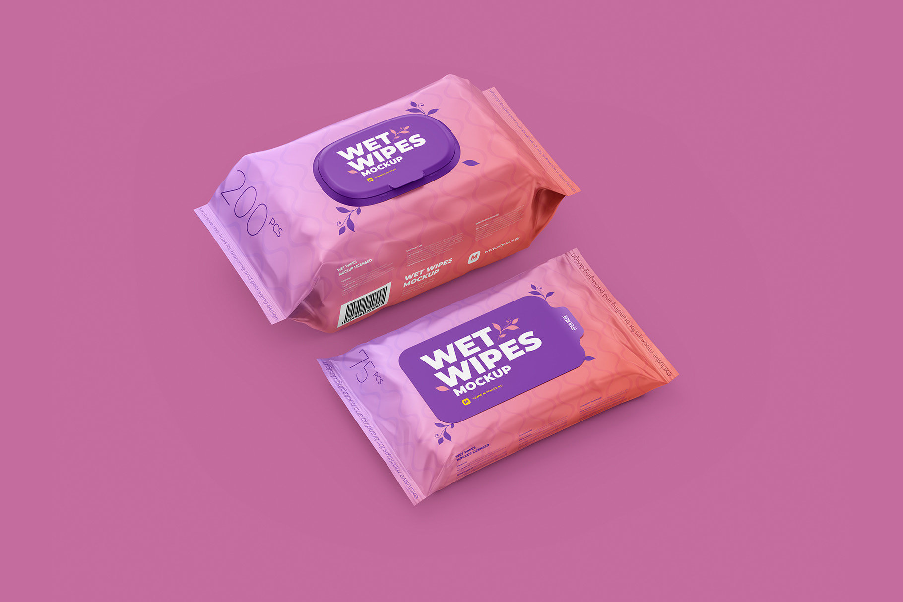 Хотите улучшить свое портфолио? Сделали дизайн салфеток и хотите показать людям? Вам необходимо презентовать упаковку влажных салфеток клиенту? Данный мокап влажных салфеток вам идеально подойдет.
